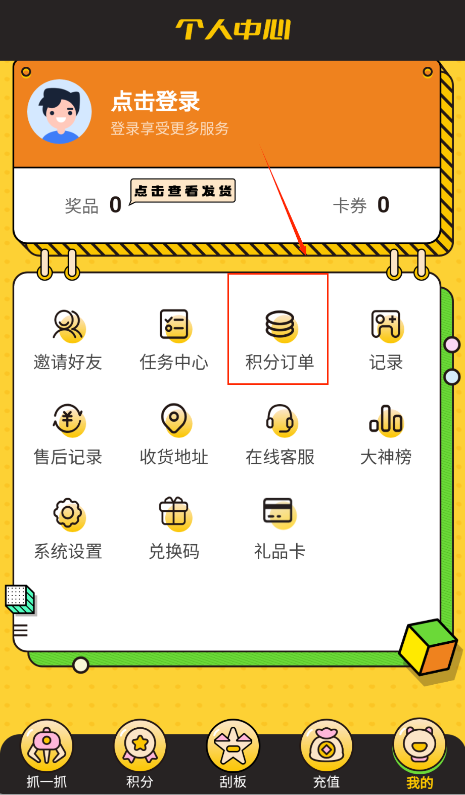 3、成功抓取玩偶后系统自动生成订单,前往个人中心填写收货地址,快递物流信息实时更新,积分会同步累积到账户。