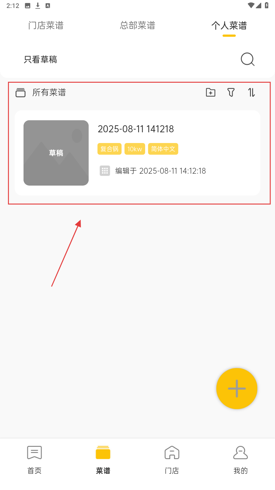 4、返回个人菜谱,查看保存的草稿,可继续编辑。