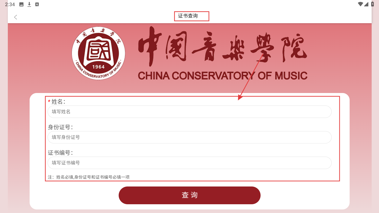 4、如需查证书,进入【证书查询】,填姓名、身份证号/证书编号,点查询。