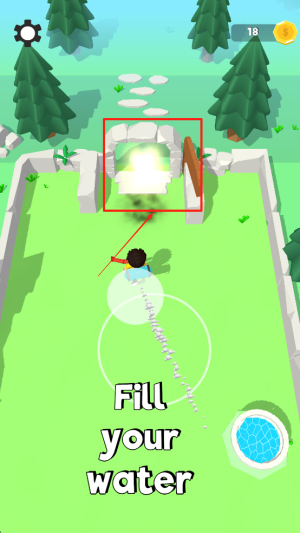 2、收集水源:控制角色移动到水源处,点击屏幕以收集水。