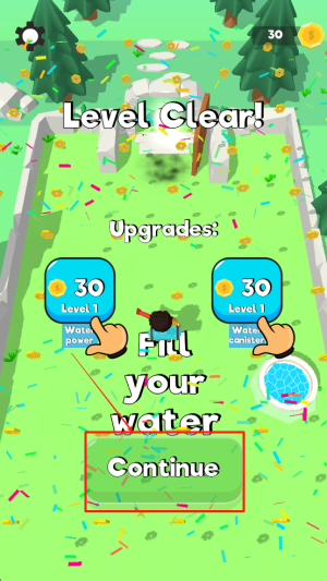 4、完成关卡:成功给所有植物浇水后,点击“Continue”继续下一关或结束游戏。