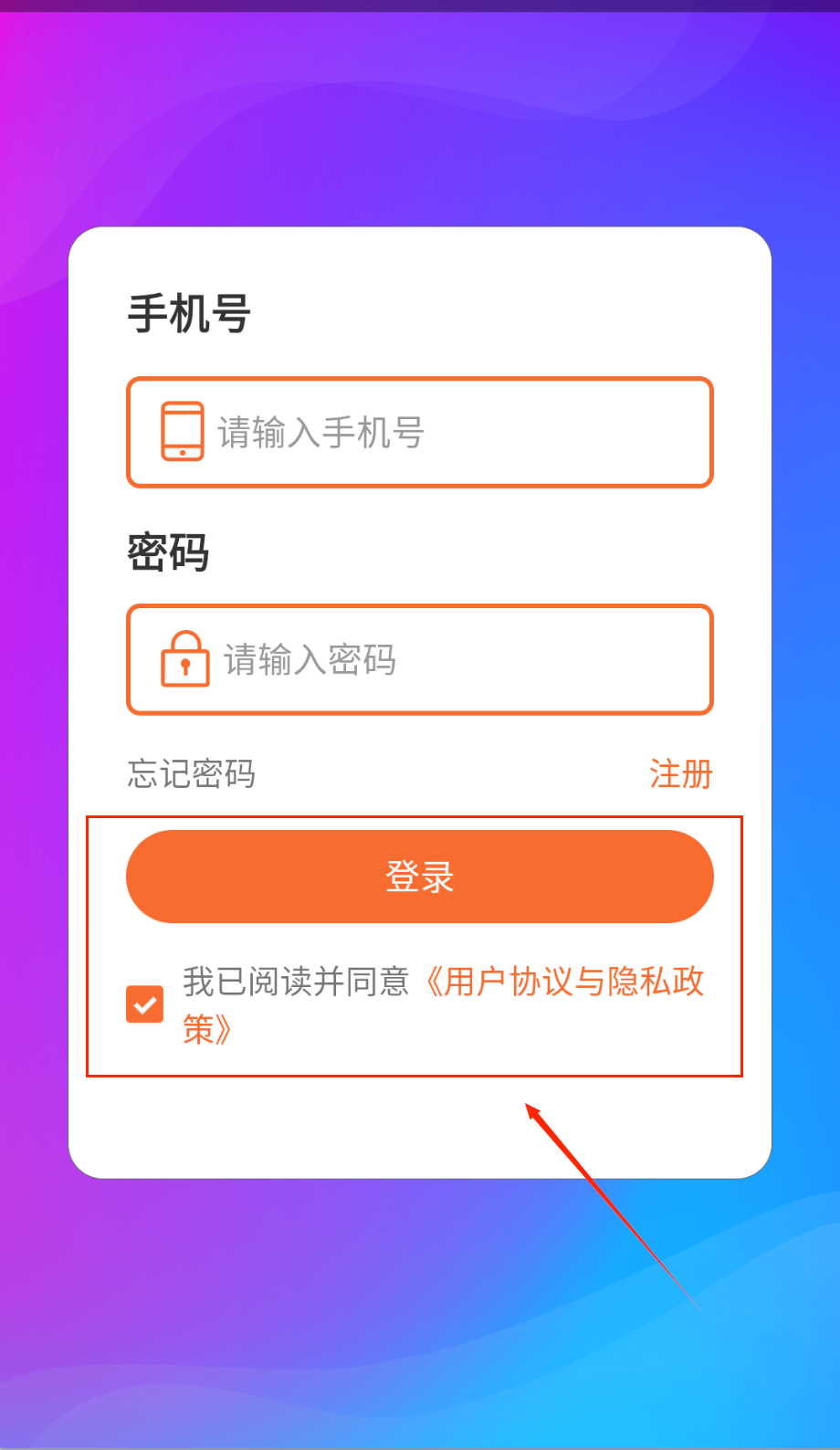 4、登录时记得勾选同意用户协议那个小方框,输入账号密码后点击橙色登录按钮就能进入主页开始购物了。