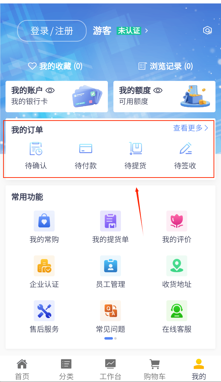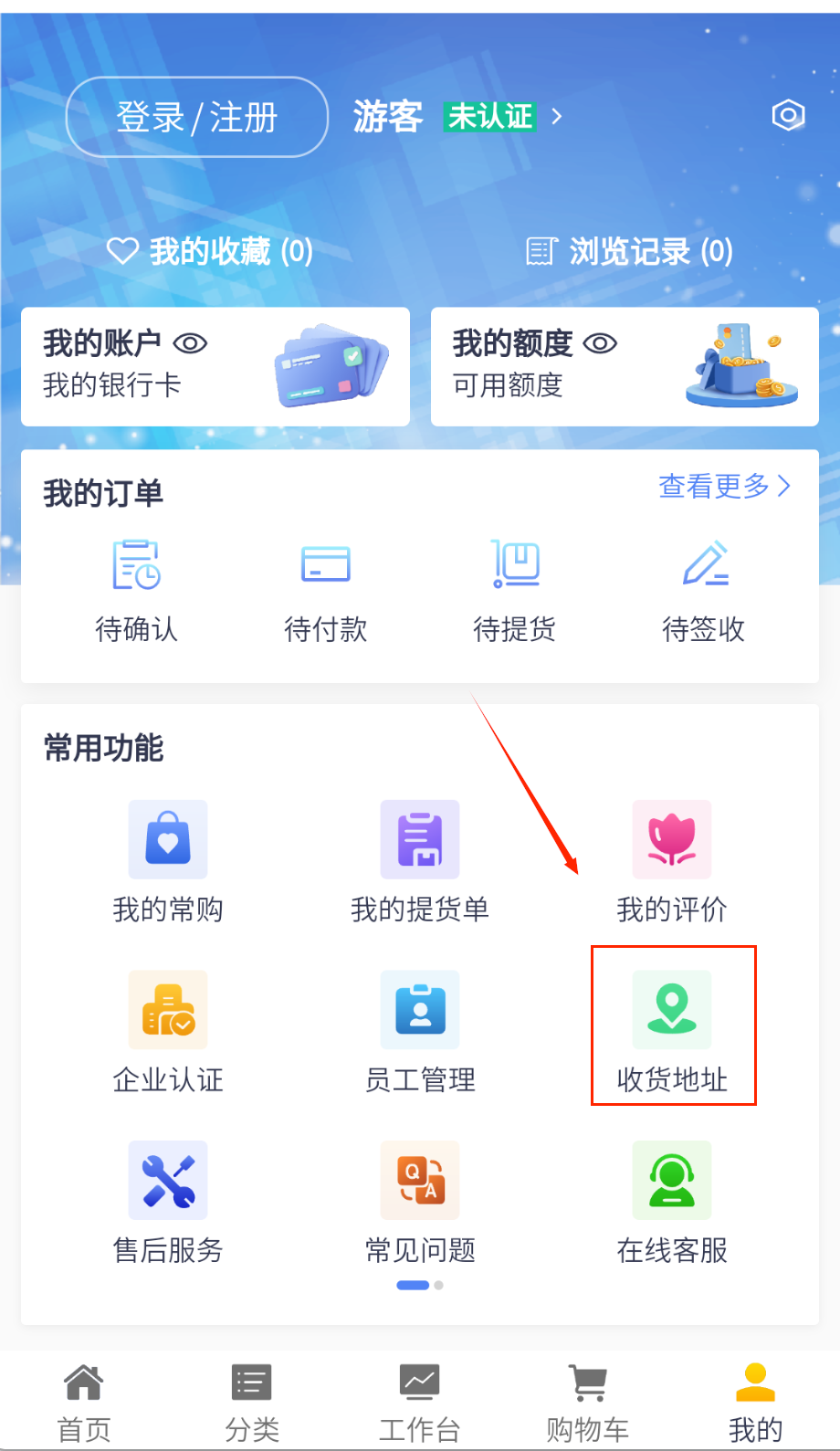 4、个人中心管理常用收货地址、采购历史记录和账户信息,可设置采购审批流程和权限管理。