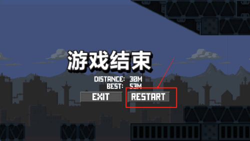 4、重新开始:如果游戏结束,点击“RESTART”按钮重新开始游戏,挑战更远距离。