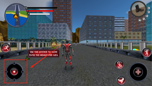 2、学会移动:出现“USE THIS JOYSTICK TO MOVE”提示时,按住左下角摇杆滑动,把角色移动到高亮区域。