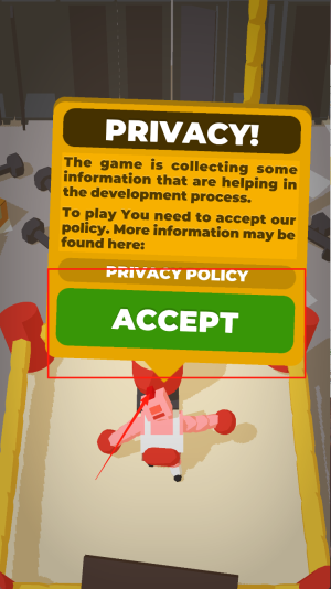 1、同意隐私:在“PRIVACY!”界面,点击“ACCEPT”按钮,允许游戏收集必要信息并继续。