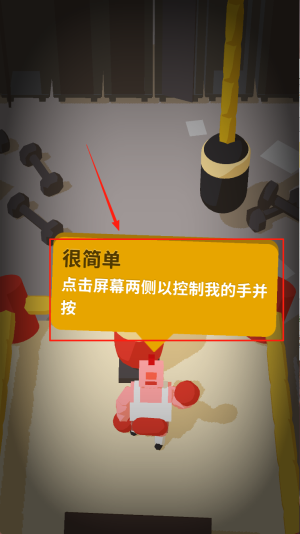 2、查看提示:留意屏幕中央的“很简单”说明,记住用左右点击控制手部动作。