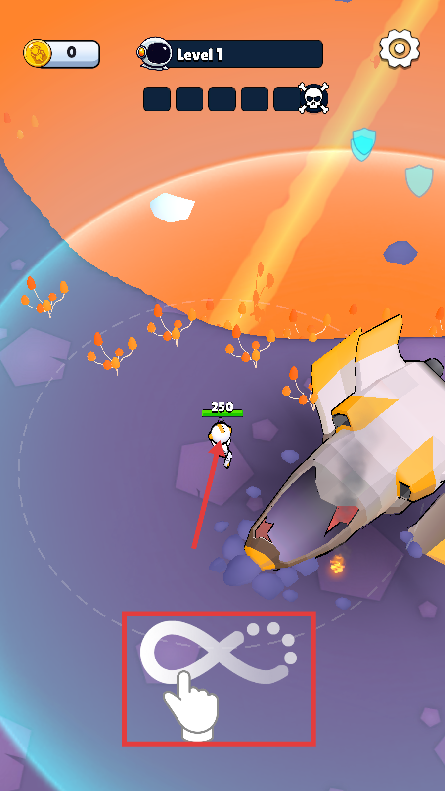 1、开局跟随指引点击【∞-符号】操控宇航员移动,熟悉基础操作开启冒险。