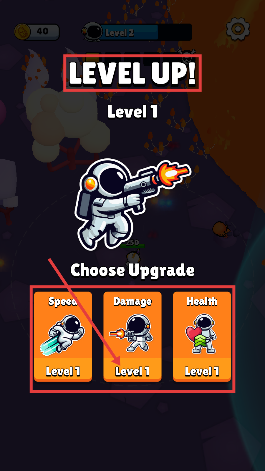 3、升级界面优先选择【Damage-Level-1】,强化攻击助力后续战斗。