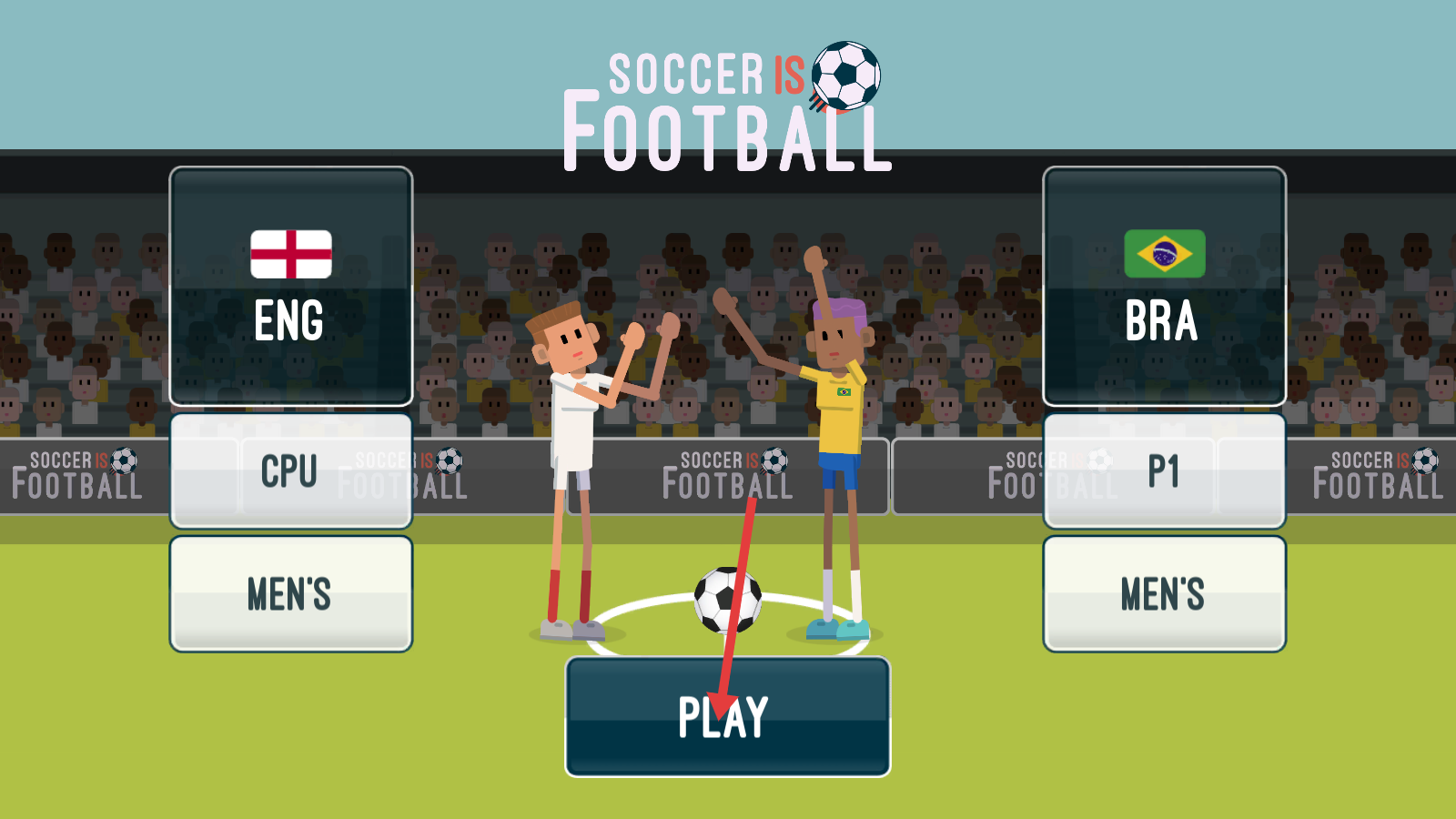 1、在【SOCCER-IS-FOOTBALL】中选定【ENG】对战【BRA】,点击【PLAY】开启赛事,熟悉对战初始流程。