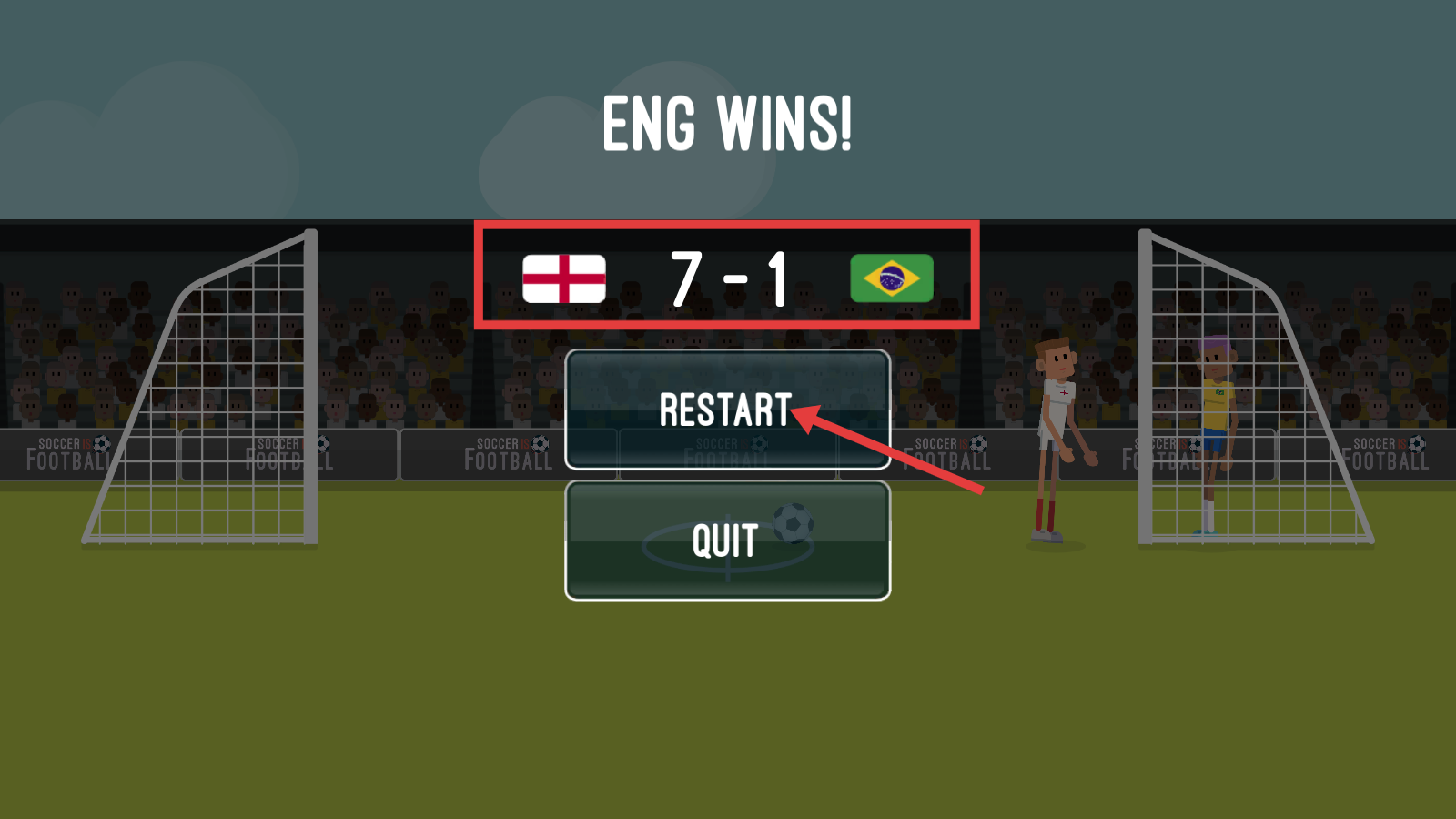 4、赛事结束后,若想重试点击【RESTART】,可调整战术再战,通过重复对决提升游戏技巧。
