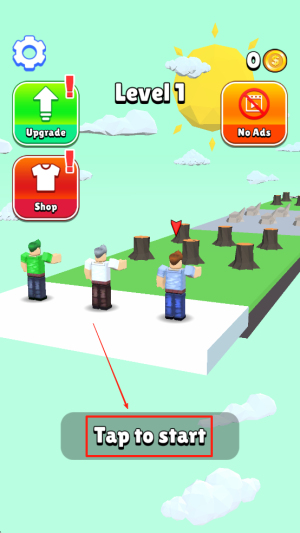1、开始游戏:点击主界面上的“Tap to start”按钮,进入游戏的第一关。