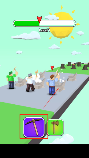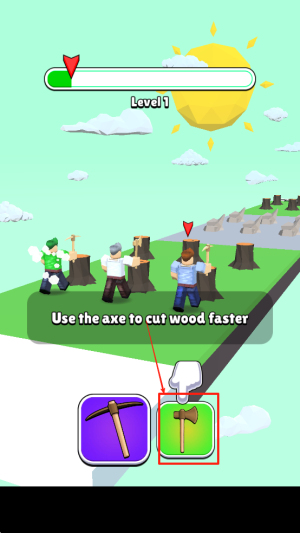 2、使用工具:在游戏过程中,点击屏幕下方的工具栏,选择斧头来加快砍伐木头的速度。