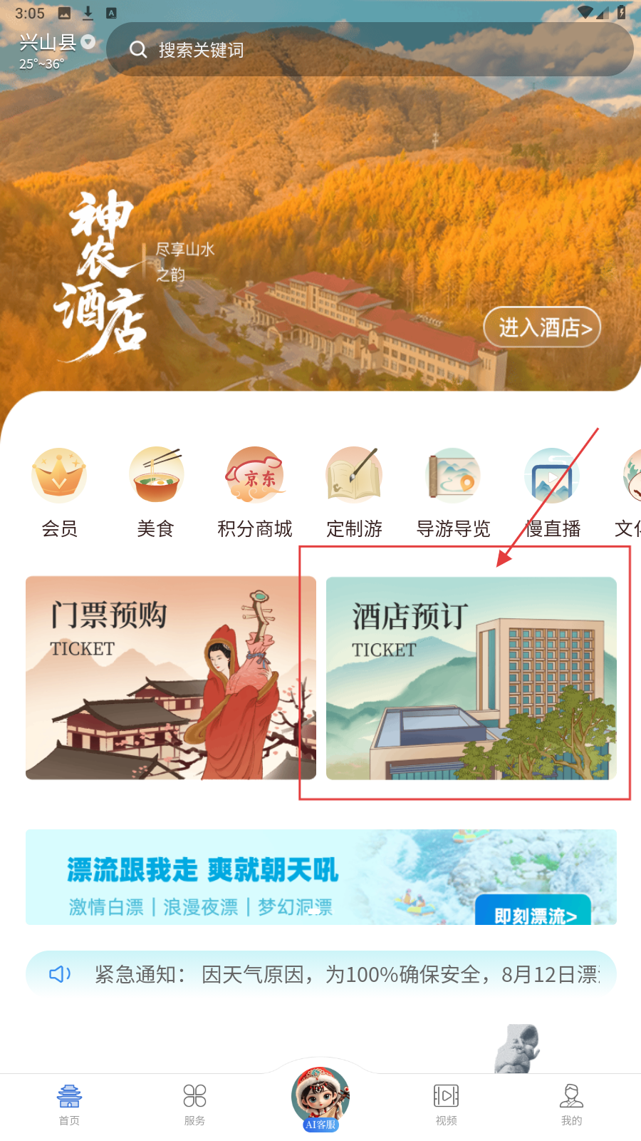 1、进入APP首页,找到【酒店预订】入口点击,开启订房流程。