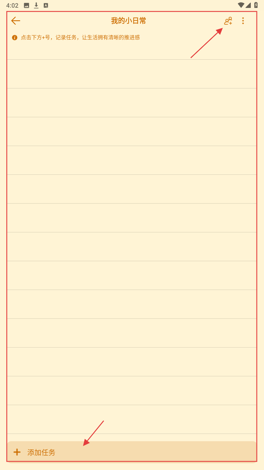 2、在【我的小日常】分类里,点底部【添加任务】录入事项,也能点右上角图标管理列表。