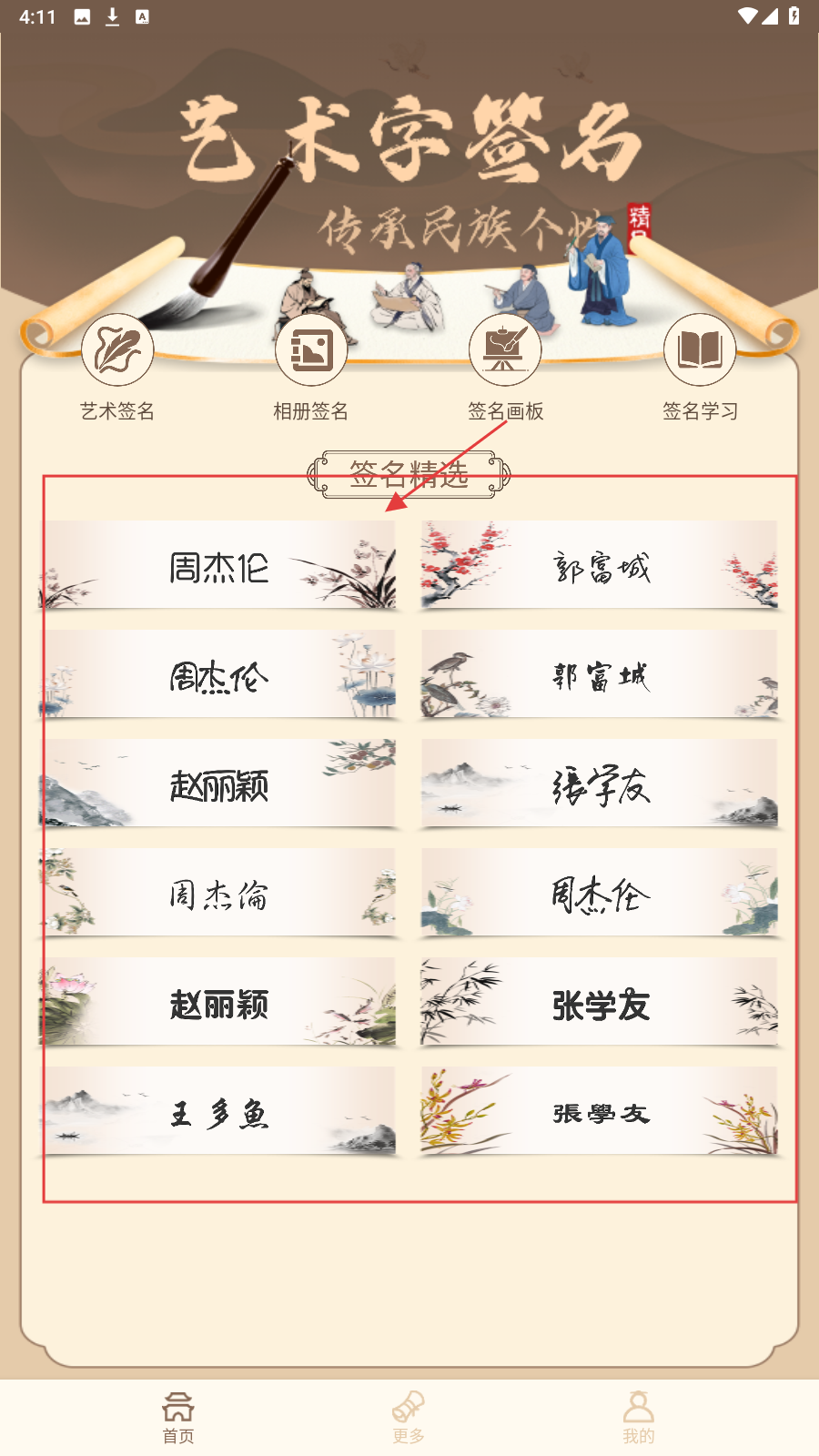 1、进入签名制作神器APP,浏览【签名精选】,选喜欢的签名样式参考。