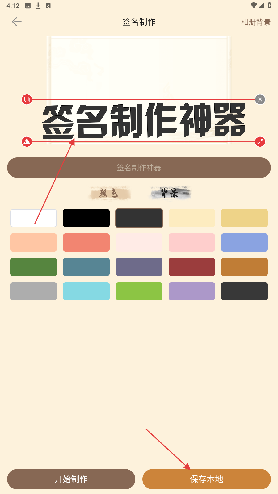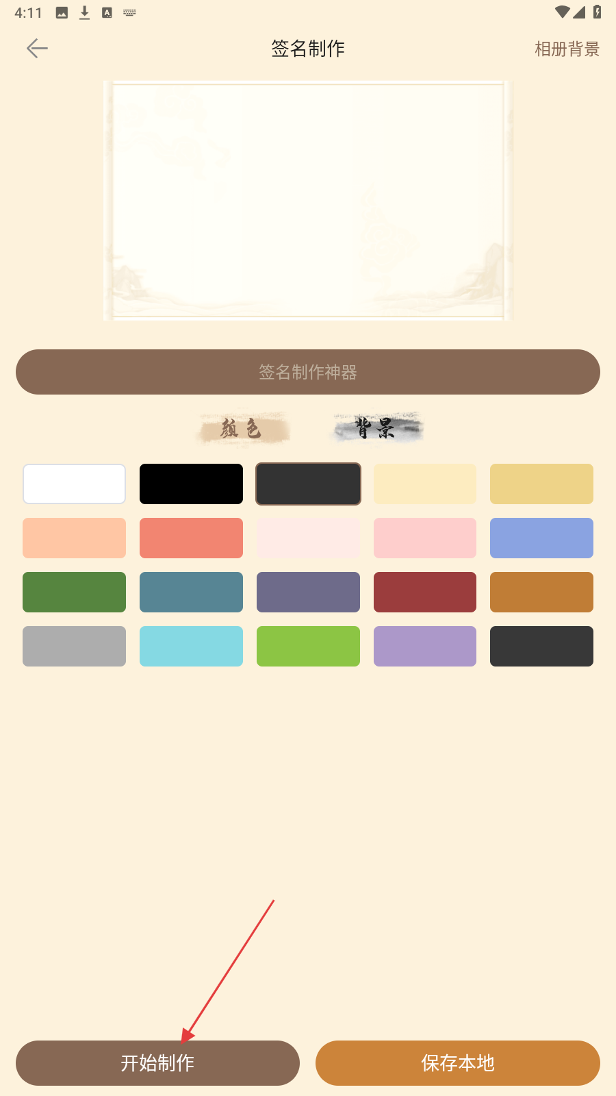 3、确认姓名、颜色等设置后,点【开始制作】生成专属艺术签名。