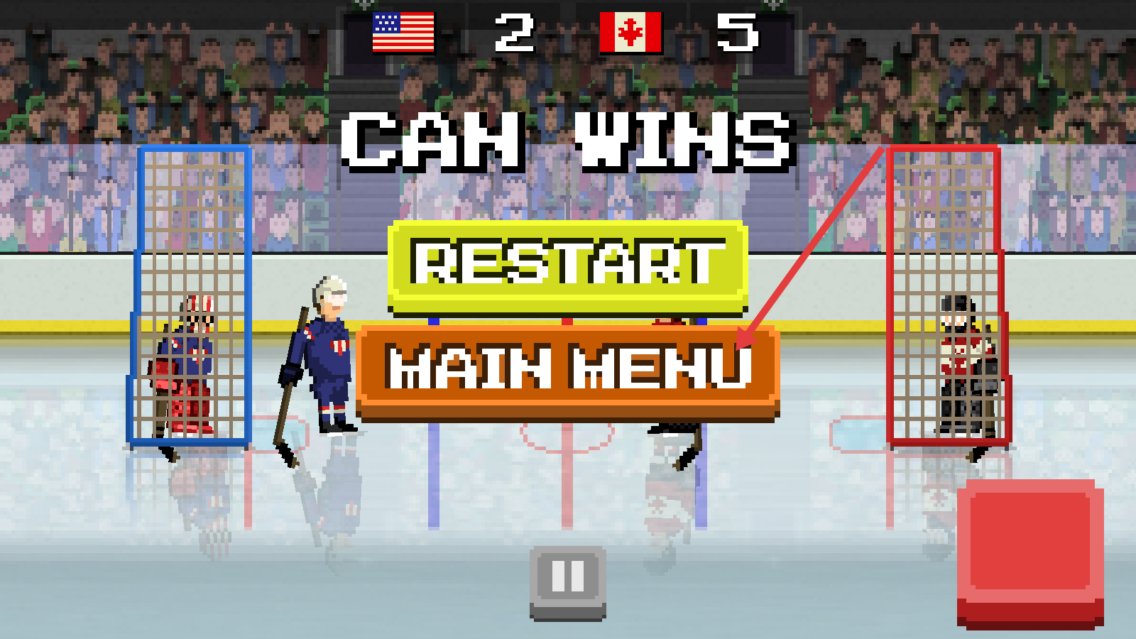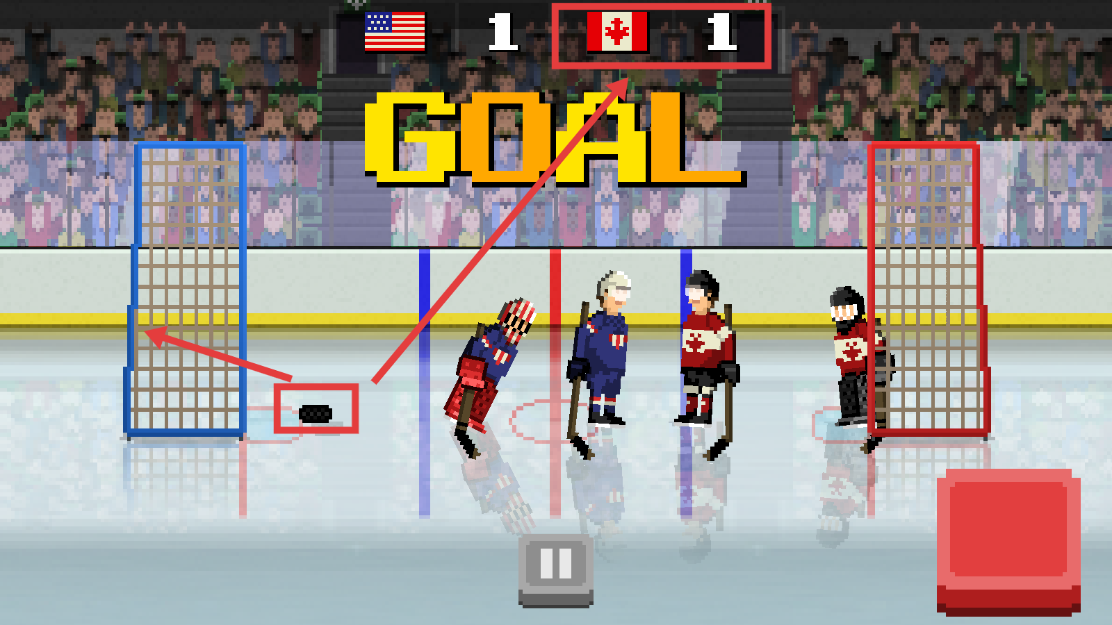 3、将冰球射入对方球门,触发【GOAL】提示,比分板实时更新(如1:1→5:2)。