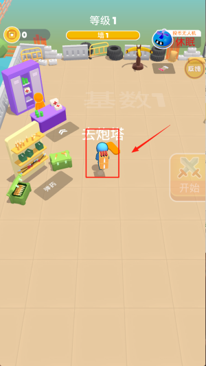 3、选择关卡:在“等级1 盘币无人机”界面,点击“开始”按钮,确认进入第一关。