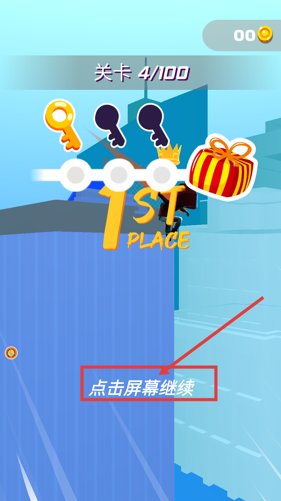 4、关卡4/100获胜后,点击【屏幕-继续】,领取奖励解锁新挑战,稳步推进游戏进程。