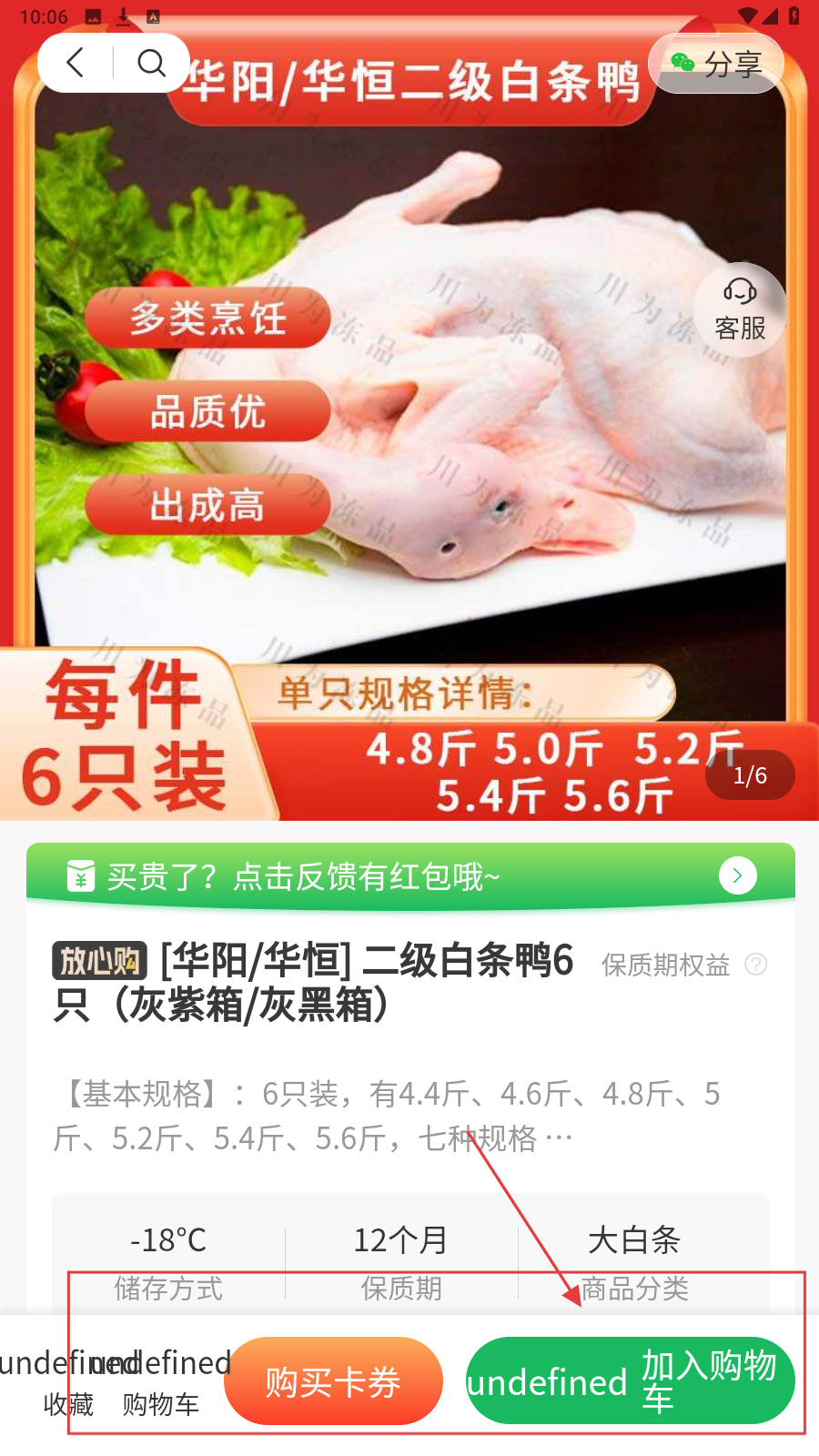 3、在商品详情页,查看商品信息,确认商品信息后点击【加入购物车】。