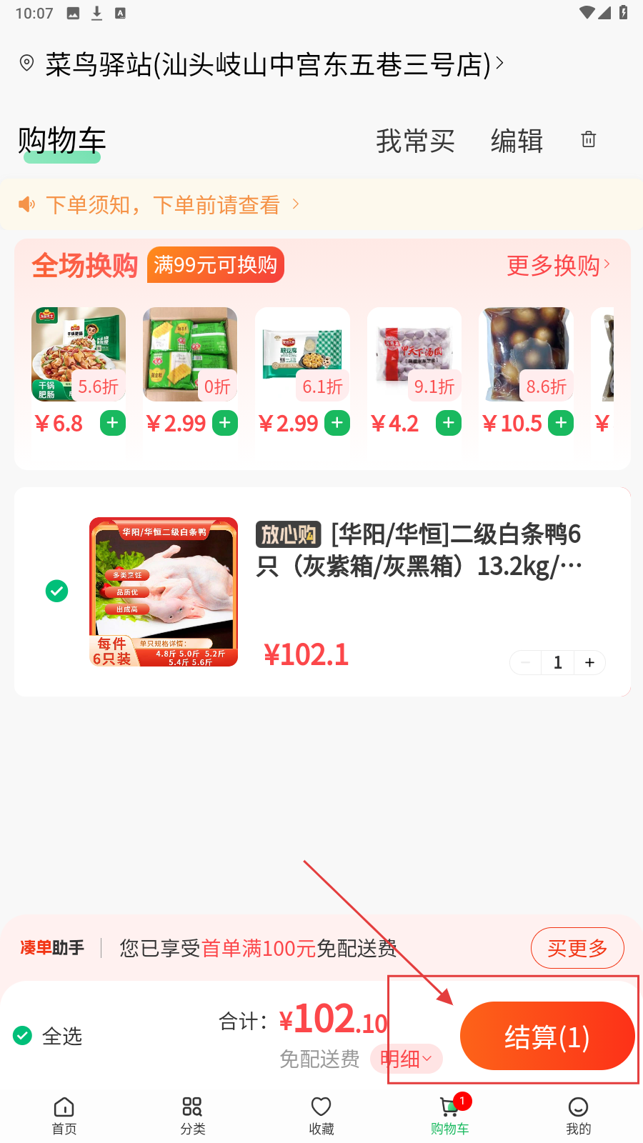 4、切换至【购物车】页面,选择要下单的商品点击【结算】即可。