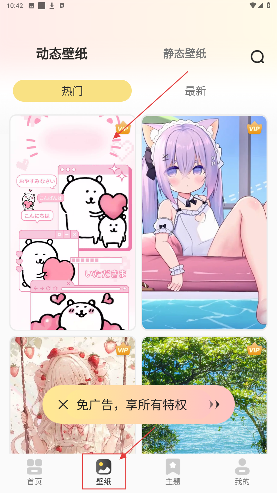 3、切换至【壁纸】页面,有静态壁纸和动态壁纸可以选择,点击心仪的壁纸。