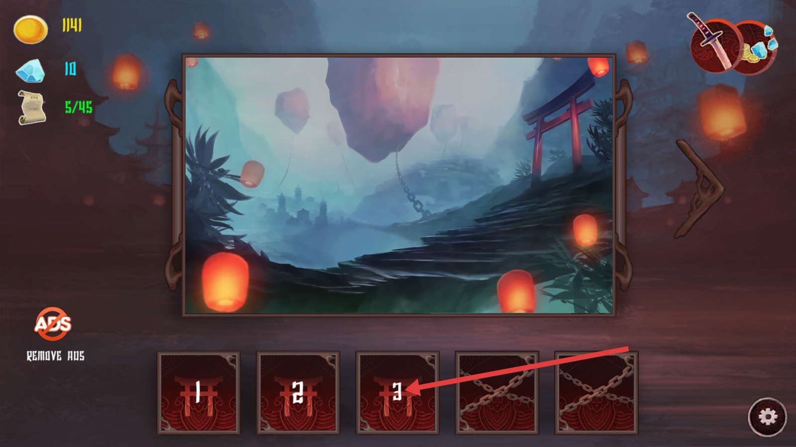 4、收集5卷轴后,解锁【关卡3】,积累金币、钻石,为角色强化或技能升级做准备。