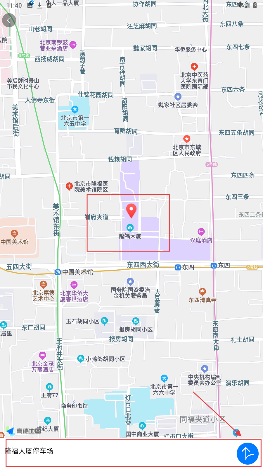 3、依据导航指引,到达【隆福大厦停车场】,完成停车操作。