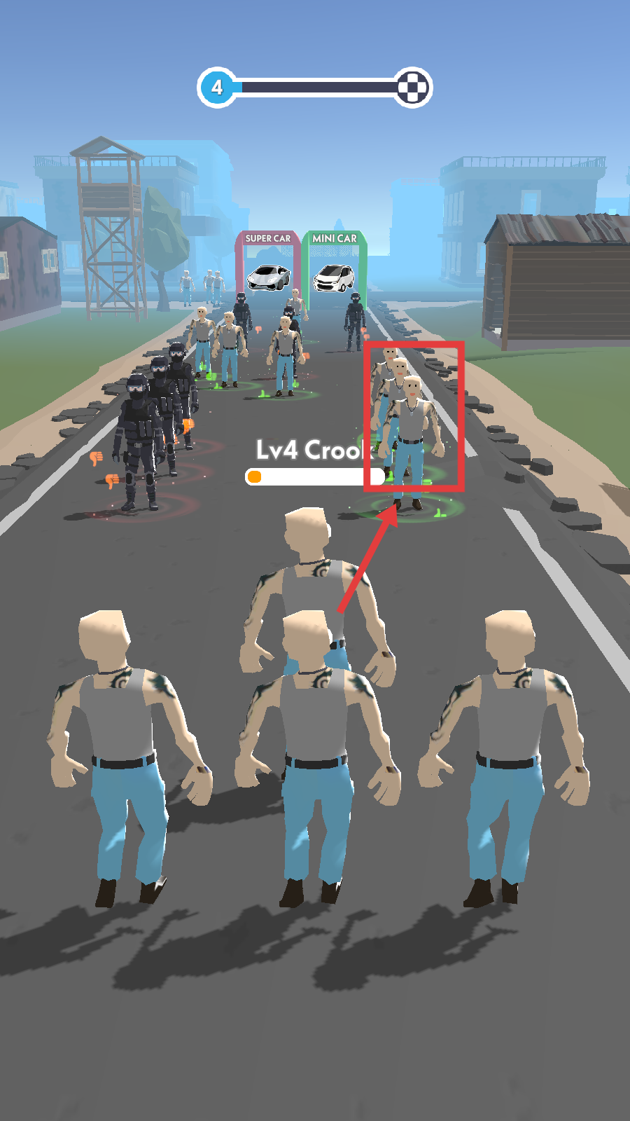 1、战前识别【Lv4-Crook】敌人,依据己方人数规划进攻,利用阵容优势布局。