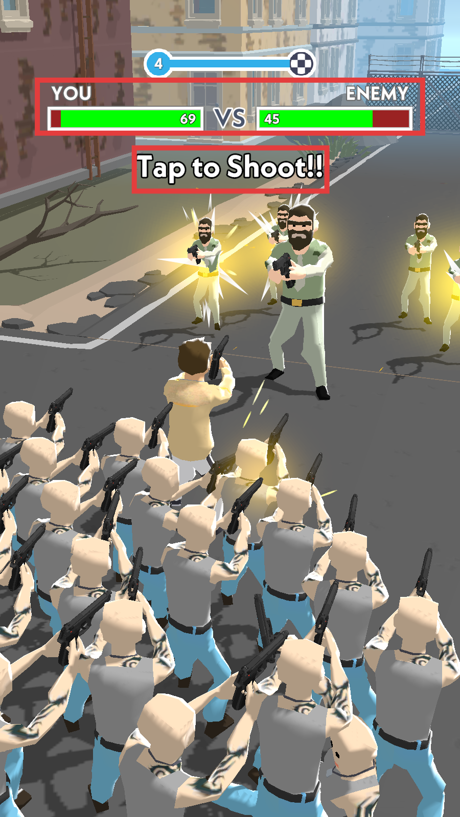 3、战斗中紧盯【69-VS-45】人数面板,点击【Tap-to-Shoot】,指挥部队集火攻击。