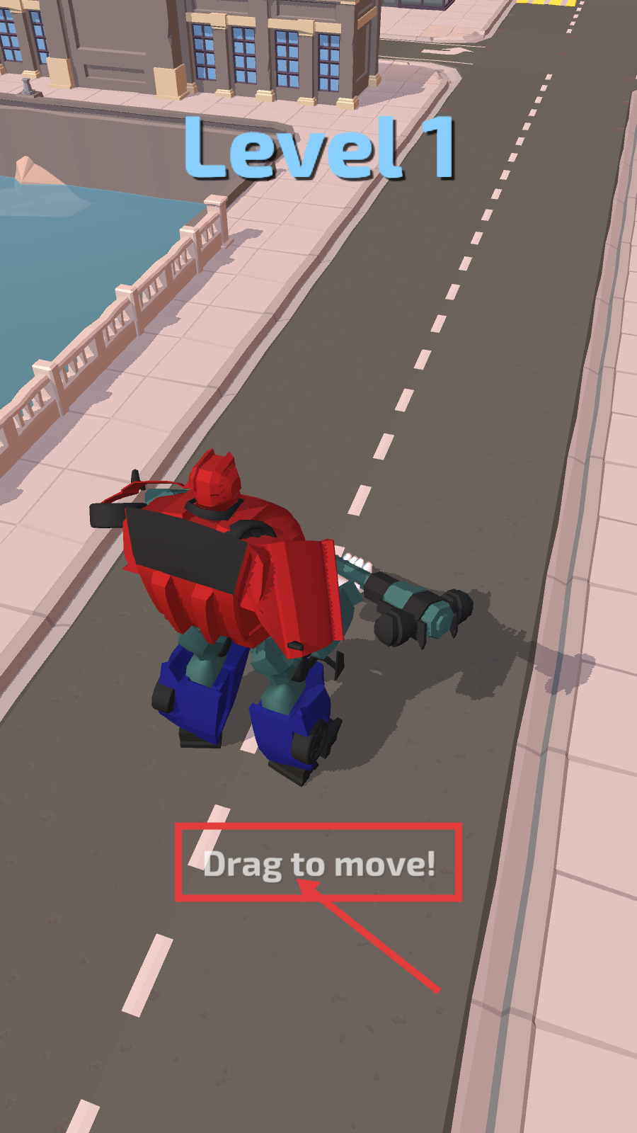 1、进入【Level1】,通过【Dragtomove】拖动屏幕,操控机器人移动,熟悉操作逻辑。