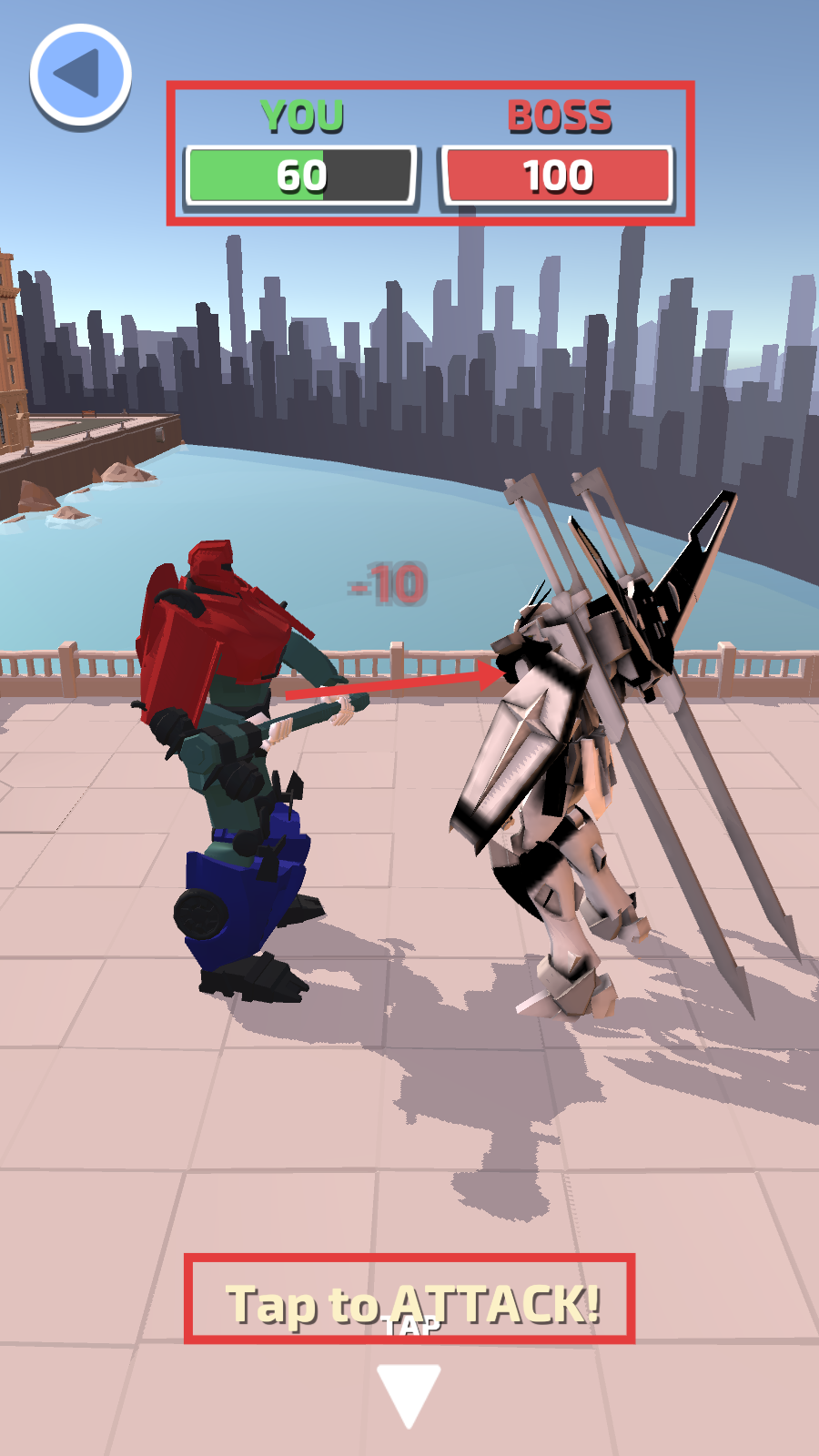 3、触发BOSS战,紧盯【YOU(60)vsBOSS(100)】血条,点击【TaptoATTACK】,持续输出击溃敌人。