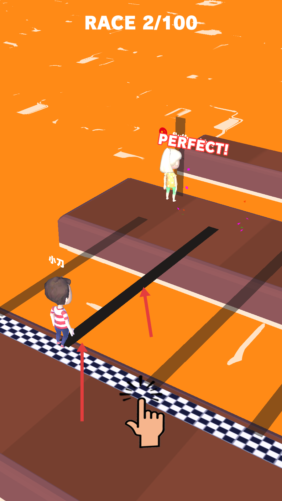 1、赛道创造机制:即时根据地形间隙铺设临时桥梁通道,通过长按控制木板铺设角度与长度保证赛道连续性不间断推进。