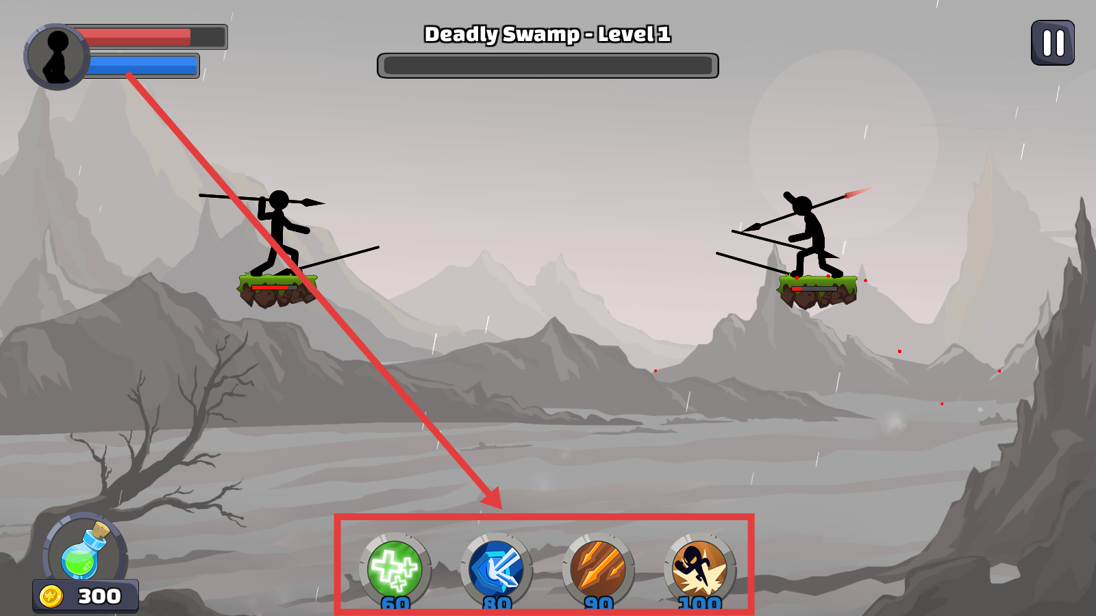 3、攻击时消耗左上角的蓝条,使用下方技能造成更高伤害,加快通关效率。