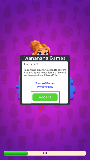 1、接受条款:点击“Accept”按钮,接受游戏的服务条款和隐私政策。