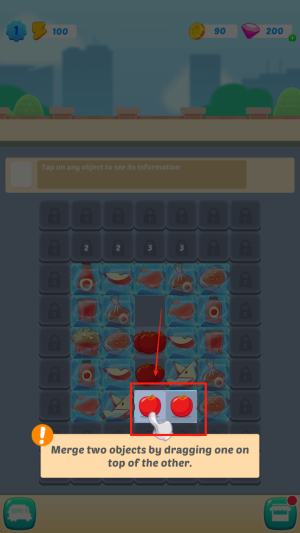 2、合并物品:通过拖动一个物品到另一个物品上,合并它们以升级。