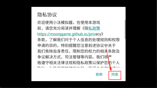 2、同意隐私协议:阅读弹窗中的《隐私政策》,点击“同意”继续。