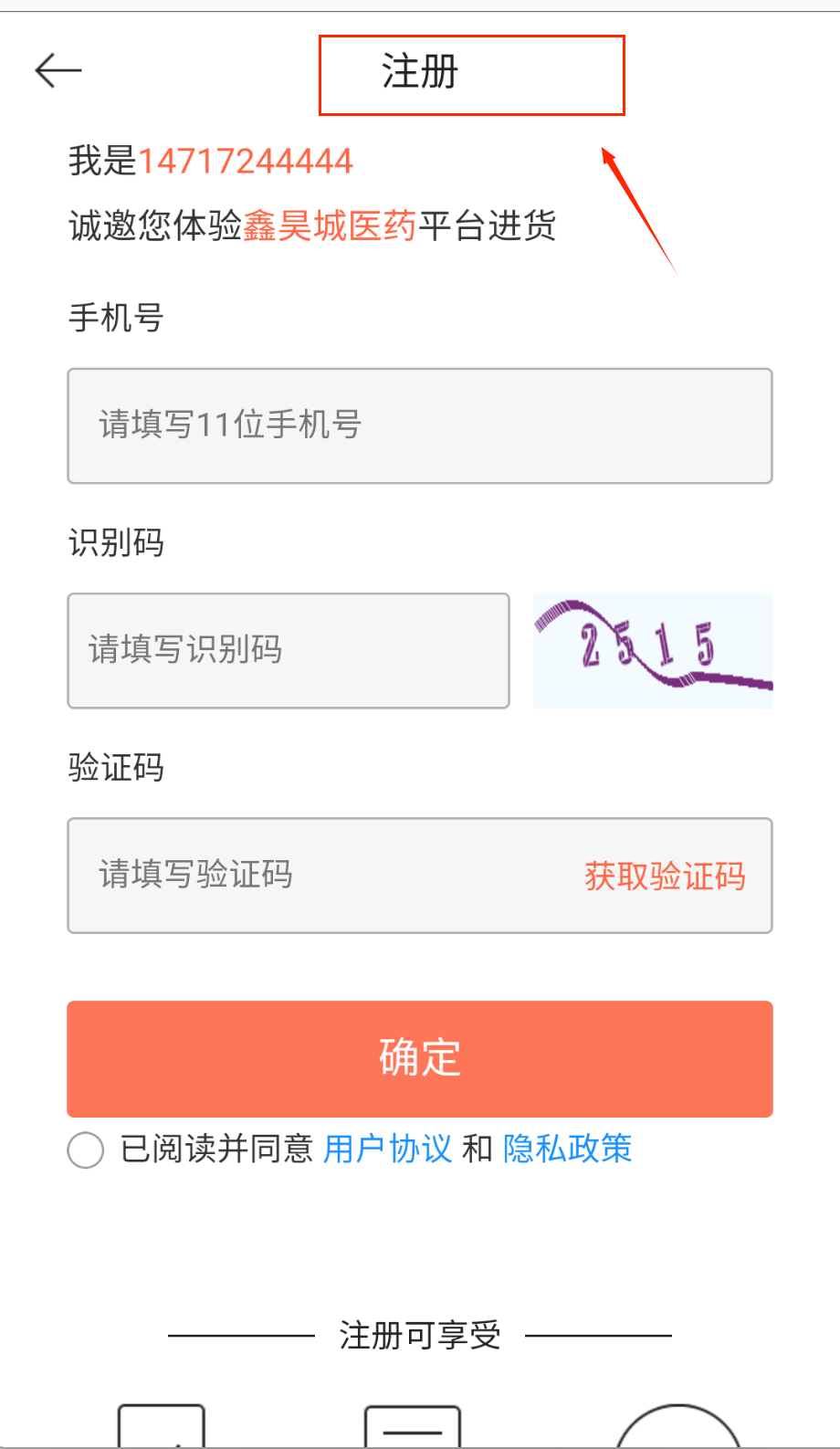 1、注册新账号很简单呢,先输入11位手机号,再填写页面显示的4位识别码,点击获取验证码按钮,收到短信后填入验证码就能完成注册啦。