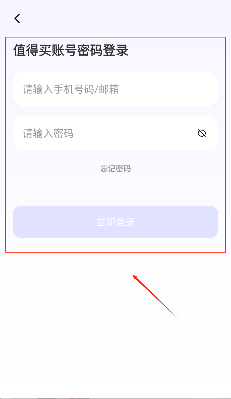 2、账号密码登录时注意看准"值得买账号密码登录"页面,依次填好手机号或邮箱还有密码,那个小眼睛图标可以帮你确认密码有没有输对哦。