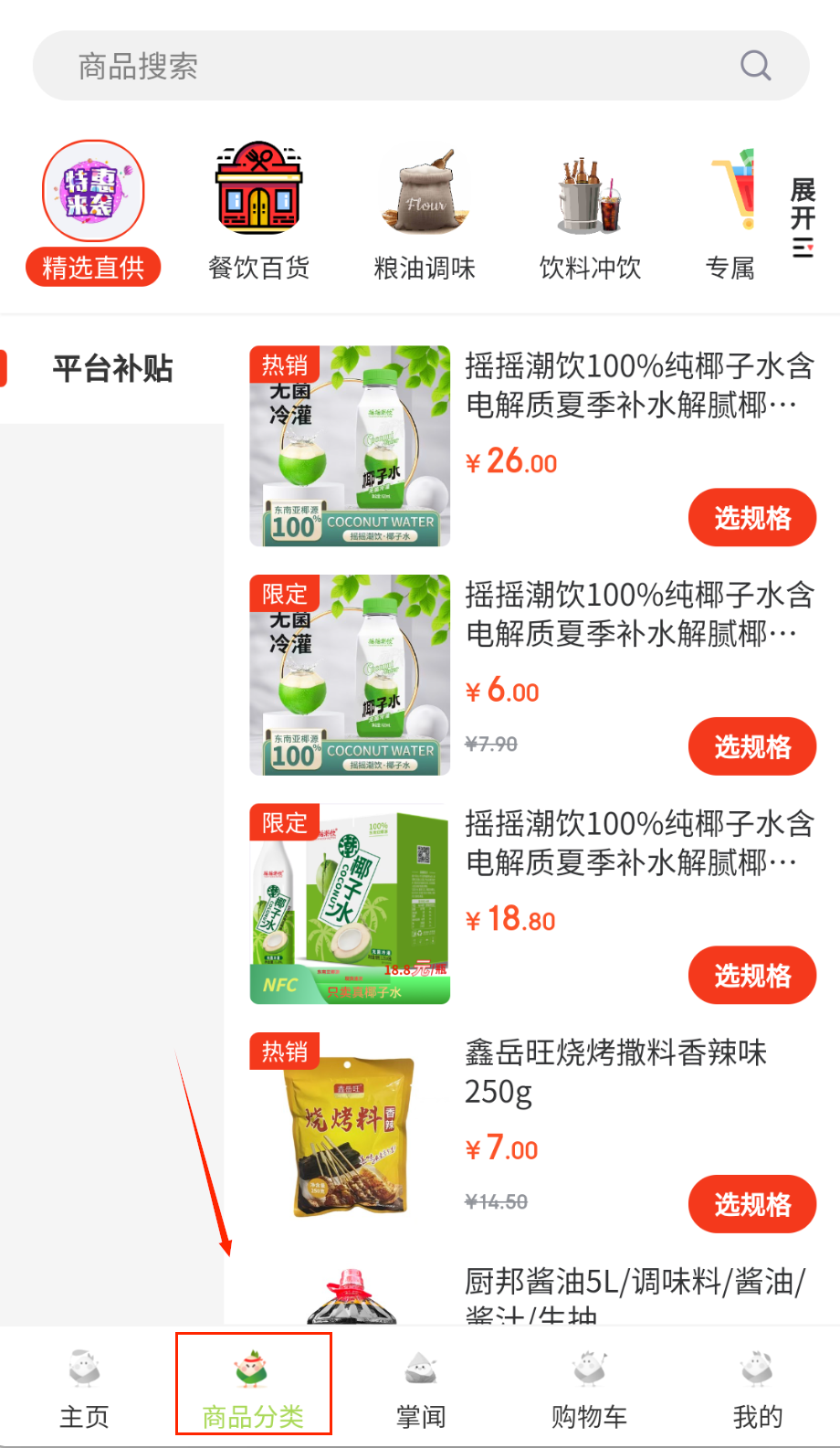 1、完成地理位置授权后进入首页浏览推荐商品,分类导航区按生活场景划分商品类型。搜索框支持输入商品名称或品牌快速定位。