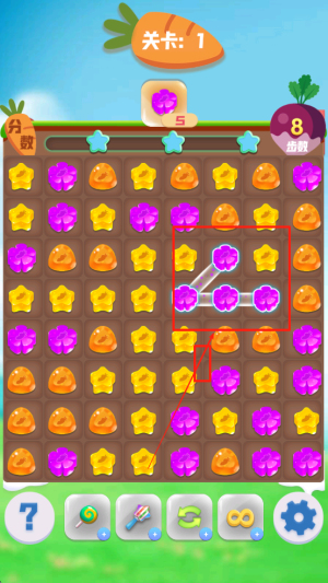 1、开启消除之旅:进入游戏熟悉操作,了解相同三消规则与道具使用,明确关卡任务目标,开启与萌兔的闯关冒险。