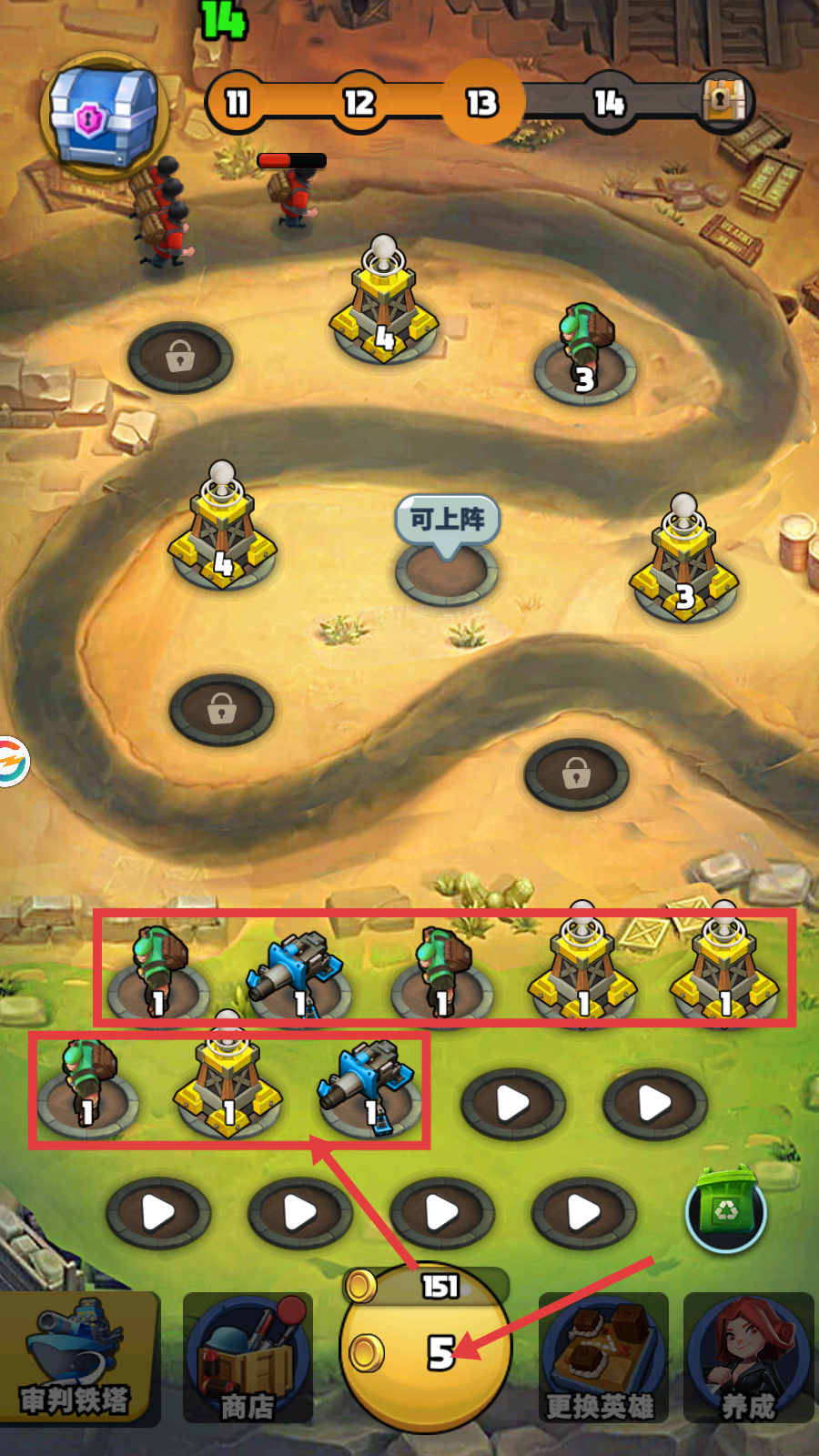 1、战斗前规划防御塔布局,优先在关键路径放置【士兵】与【防御塔】,利用【金币-151】资源填充阵型,巩固防线。