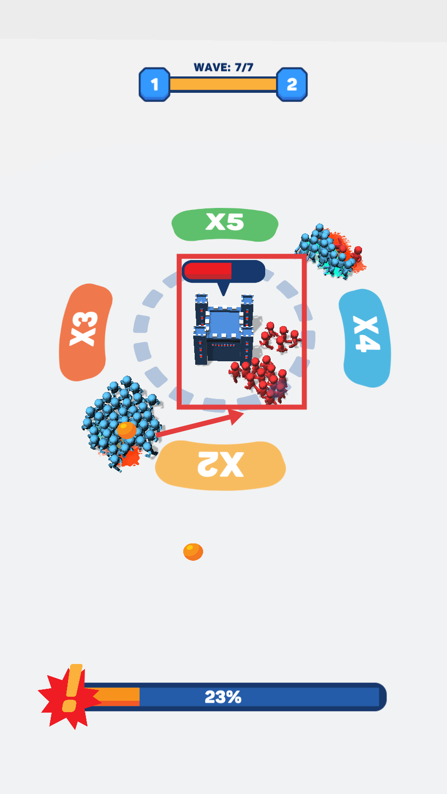 3、应对【WAVE-7/7】最终波,集中【X3】【X2】兵力守护城堡,阻止红色兵种突破防线。