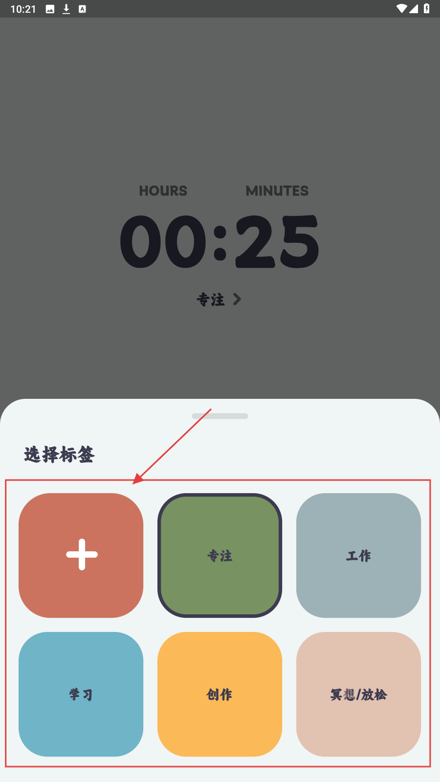 2、点击后有不同的分类标签,可以按需选用,也可以点击【+】按钮进行创建。