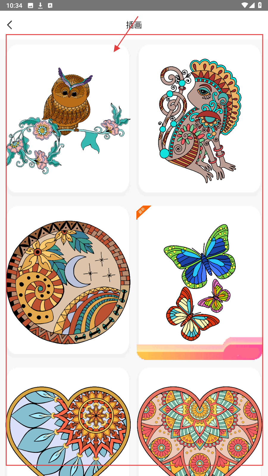 2、进入【插画】页面,在图案列表中选择心仪的图案并点击。