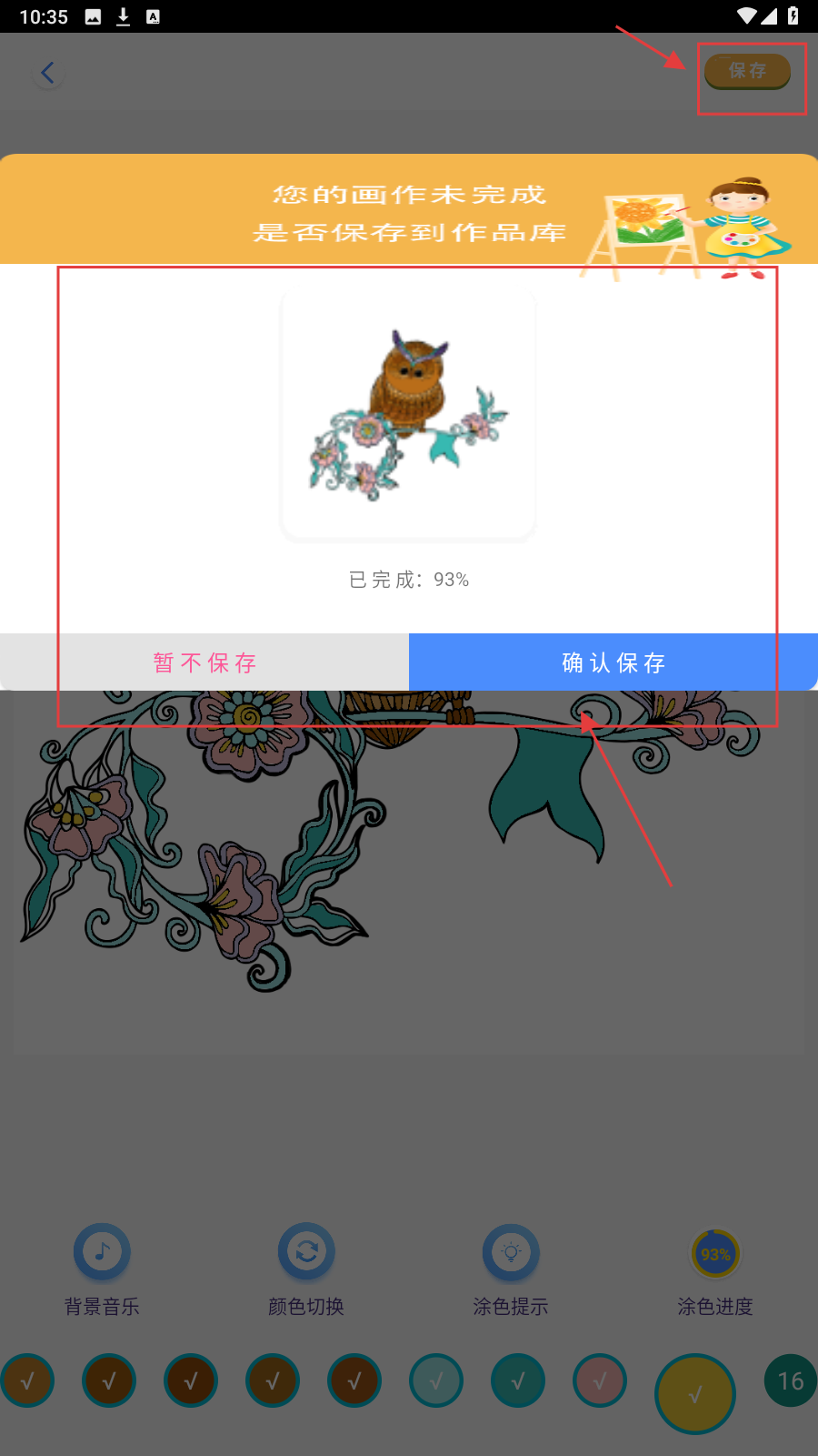 4、如需保存,点击右上角【保存】按钮,在提示弹窗中点击【确认保存】就能将作品加入作品库中。
