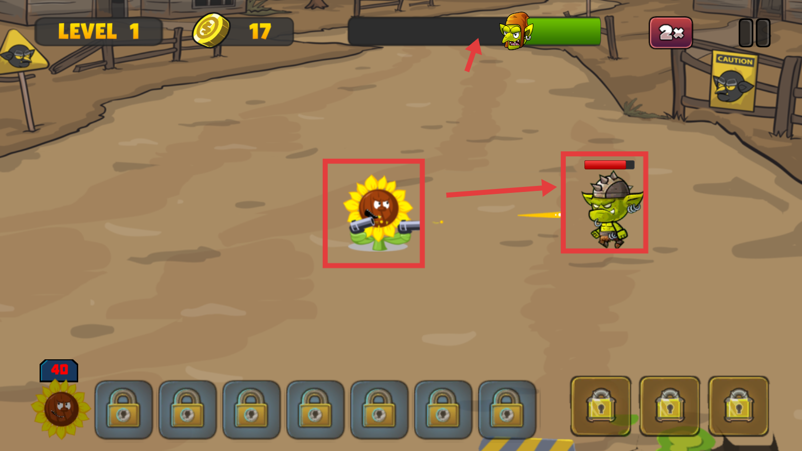 3、操控【向日葵】攻击来袭【哥布林】,持续输出拦截敌人,战斗中积累金币资源。