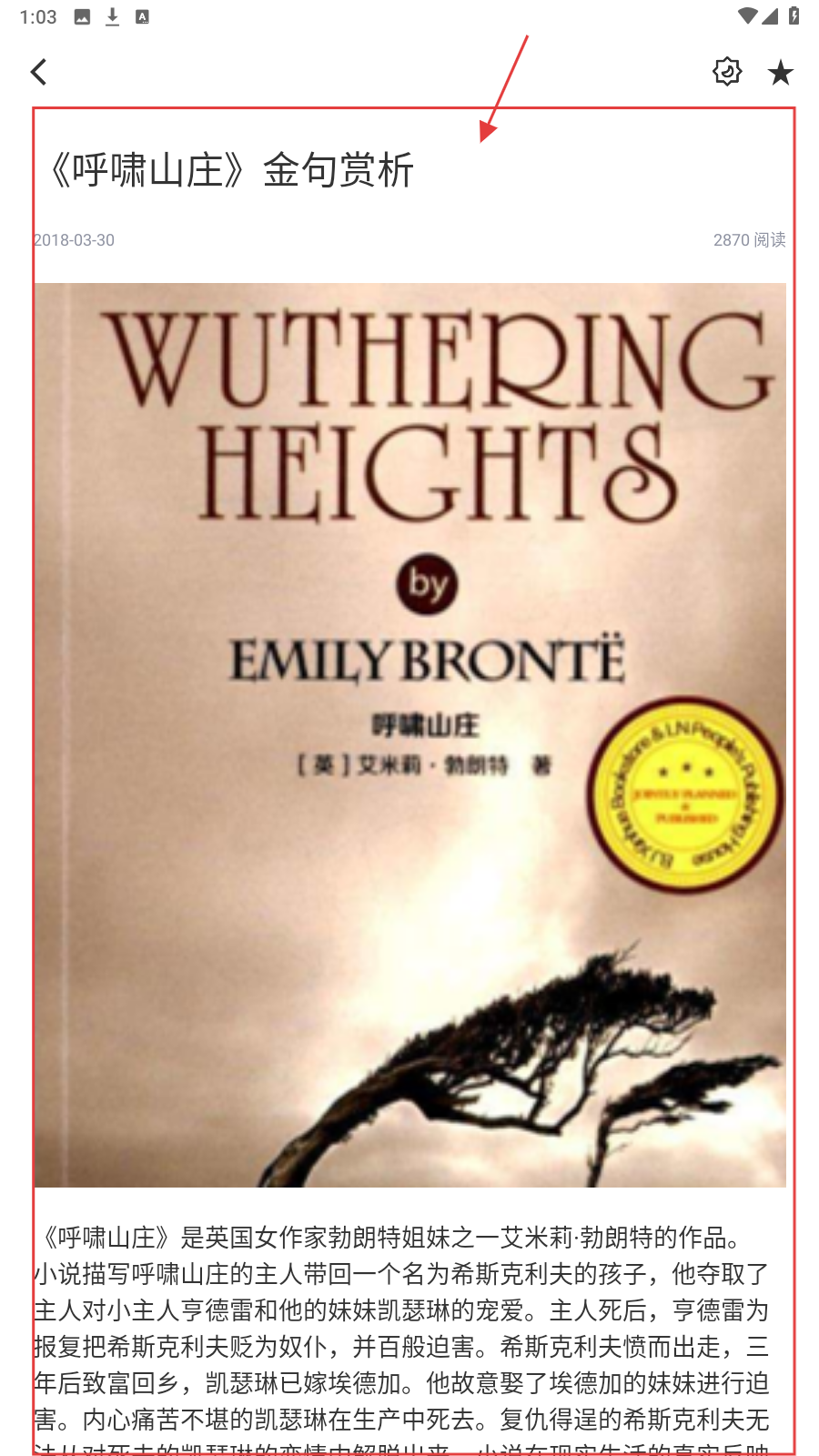 4、学完单词,点【阅读】进入《呼啸山庄》金句赏析,借原著阅读巩固语言知识。
