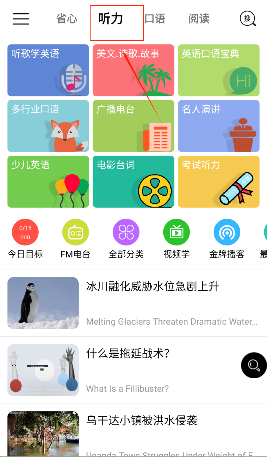 2、听力分层训练:按难度分级提供日常对话、新闻播报等听力素材,支持逐句精听、跟读对比及语速调节,逐步提升听力理解能力。